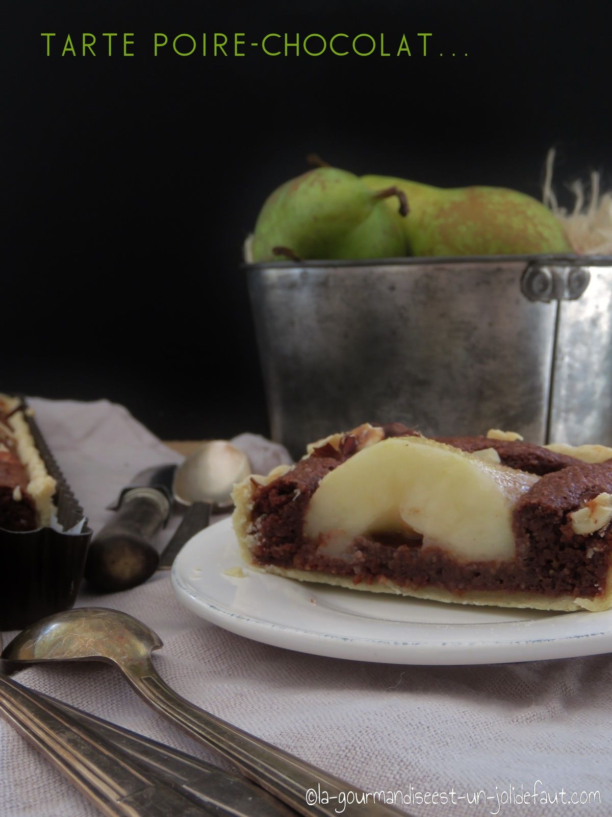 Comme chaque année, je fais mon devoir de tatie en achetant des cagettes de pommes et de poire à l'association de parents d'élève de l'école de mes nièces. Ce qui leur permet de financer des activités pour les enfants. Me voici donc revenue avec un cageot de pommes et un autre de poires. J'avais déjà l'idée de cette tarte, une sorte de Bourdaloue revisitée au chocolat et aux noisettes. Étant ce jour là atteinte d'une petite flémingite, je dis petite car sinon je n'aurai même pas mis les pieds dans la cuisine à part pour faire réchauffer mon repas, j’ai fais une pâte brisés simple et rapide en y ajoutant une cuillère a soupe de cassonade. Si vous avez plus de courage que moi je vous conseille fortement de faire une pâte sucrée ou sablée.